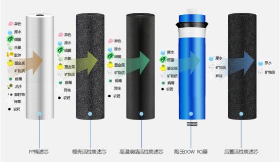 坚持优质滤芯,过滤精度高达0.0001微米 反渗透净水器能够备受用户青睐和行业重视,得益于其强大的过滤效果,RO反渗透膜的孔径可以小至头发丝的一百万分之一,强力去除自来水中的杂质、细菌、病毒等有害物质。决定一款反渗透净水器产出的饮用水水质的核心是滤芯,其中RO反渗透膜更是滤芯中的灵魂元件。一方面,高精度的RO反渗透膜,保证了水质的健康、纯净、可口;另一方面,滤芯是一种耗材,其品质会影响使用寿命周期的长短。