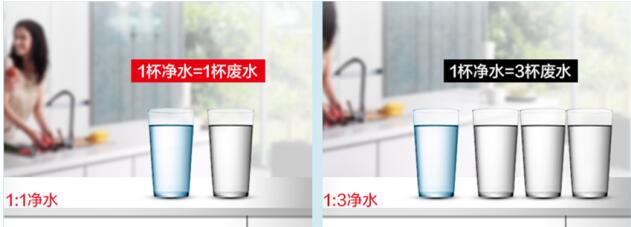 突破废水痛点,1:1废水比节约66%废水 反渗透净水器相比其他净水器产品优势显著,但却始终有一个无法避免的行业痛点——废水。当前市面上的传统反渗透净水器,普遍是净化一杯纯净水就产生三杯“废水”,1:3的废水率造成很多资源浪费。