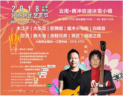 “最适合旅行的音乐”2018年云南腾冲启迪风马音乐艺术节将于3月24日—25日落地云南腾冲启迪冰雪小镇,演出全名单和演出时间表正式发布,郑钧、许巍等十二组风格各异的乐队齐聚云南腾冲,为观众带来截然不同的现场体验。