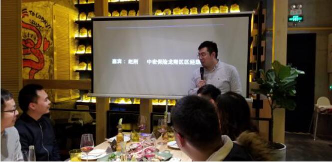 (中宏保险龙翔区的区经理,赵刚) 大约六点过后,第一位分享嘉宾上台分享。他是来自中宏保险龙翔区的区经理,赵刚先生。保险从业十余年,至今个人客户过千,团队过三百。他的第一个一百万是几年前就实现了。回忆起第一个一百万,他的观点十分明晰: 一,看清自己所处的位置和行业环境; 二,做一份可持续发展的事业; 三,坚持做下去; 四,发展团队,不做个人英雄。
