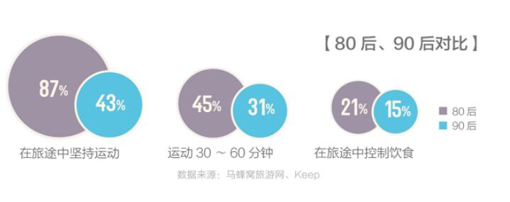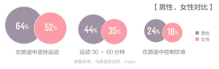 消费升级时代,当运动遇见旅行,能碰撞出什么火花? 近日,运动科技品牌 Keep 联合全球旅游消费指南马蜂窝旅游网发布《旅途中 APP 使用行为分析报告》。该报告基于 Keep 和马蜂窝两大平台大数据,辅助在线问卷调查抽样数据,全面解读了年轻旅行者在旅途中的运动行为。 数据显示,那些平时就有运动习惯的人,在旅途中依然不忘运动,坚持运动的比例高达 54%。这些热爱运动的人拥有显著而独特的旅行习惯,运动甚至影响着他们的旅行决策。 旅途中坚持运动的人中,有一半的人会优先考虑带有健身房的酒店,但其中只有 41% 的人真的会去使用。总体来看,人们会缩短运动时间,56% 的人运动时长不足 30 分钟,39% 则会运动 30 至 60 分钟之间,只有 4% 的人能运动一个小时以上。从这些目标与执行之间的偏差可以看出,旅途中坚持运动很容易沦为空喊的口号。