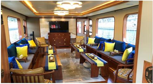 据了解,昆玉号首创了“知名企业文化商船”概念并将之付诸实践,可以说昆玉号是一艘融合了古今中外智慧文明,集文化与科技于一身的现代文化商船。它的成功试航也将标志着北京内河无游艇的时代即将终结,这艘搭载着中国风的文化商船在京城商务会议、接待、弘扬企业文化等多方面发挥作用。其商业价值、文化价值均具有“划时代”意义! |