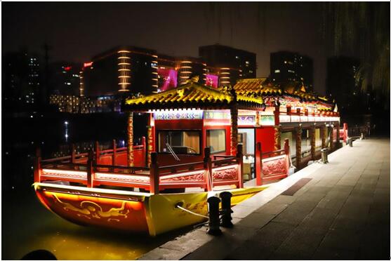 据船上相关负责人介绍,昆玉号目前正在试航阶段,在试航结束后将正式投入商业用途。在谈及这艘船的相关配置时负责人则表示,这艘船为北京昆玉河游艇俱乐部有限公司研发制造,总长26.88米,宽5.8米,外部采用中国传统宫殿建造风格,金瓦红墙体现中华五千年传统文化,内部则优先使用了现代节能技术、降噪技术以及一系列高新科技。整艘船既是艺术品,也是科技的结晶,气势恢宏,雍容华贵。也正是文化商船在硬件、软件方面的超高配置,昆玉号在试航结束后将被广泛应用于企业品牌展示、商务会议等场合。