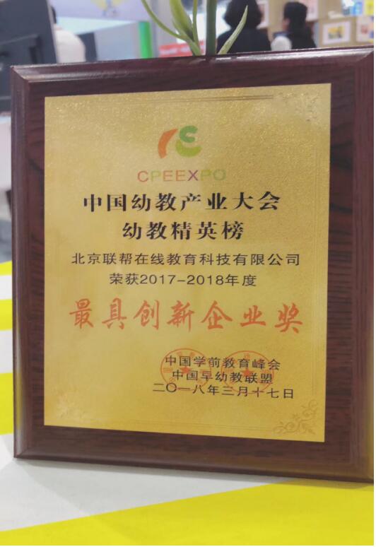 联帮在线教育荣获“中国幼教产业大会幼教精英榜·最具创新企业奖”