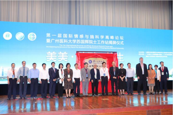2018年4月27-29日,由中国研究型医院学会批准,中国研究型医院学会神经再生与修复专业委员会主办,广州医科大学附属脑科医院(广州市惠爱医院)和暨南大学粤港澳中枢神经再生研究院承办的第一届国际情感与脑科学高峰论坛暨广州医科大学苏国辉院士工作站揭牌仪式在广州白云国际会议中心隆重举行。 第一届国际情感与脑科学高峰论坛执行主席、广州医科大学附属脑科医院徐贵云教授和暨南大学粤港澳中枢神经再生研究院周立兵教授共同主持开幕式,并发表了热情洋溢的欢迎辞,徐贵云教授当即赋诗曰“广州四月花正红,烟雨朦胧舞春燕;五羊盛情会宾朋,情感满园小蛮腰”。接着,中国神经科学协会精神病学临床与基础分会主任委员、上海交通大学大学方贻儒教授,香港大学脑与认知国家重点实验室共同主任李湄珍教授,中华医学会精神医学分会侯任主任委员、中南大学湘雅二院李凌江教授分别在开幕式上致辞。
