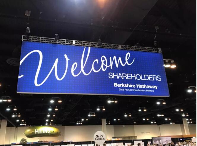 以诺教育巴菲特大会游学团队合影。 2018年巴菲特股东大会现场 九点一到,如预期地先播放由巴老领衔主演,主要被投企业轮流出场的大片,随后众望所归的巴老与芒格展开报告,整场保持了一贯直率不失幽默的对话。