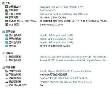 (戴尔成就5471靓丽的外型非常惹眼) 内在强大有内涵,引领商务办公新趋势 硬件配置方面,戴尔成就5471采用了英特尔第八代酷睿i7-8550U处理器,显卡方面则采用了来自AMD的Radeon 530 4GB独立显卡,内存为16GB DDR4-2400高频内存,硬盘为256GB固态硬盘与500GB机械硬盘组合。i7-8550U是目前英特尔低压版八代酷睿中性能十分出色的处理器,性能相较前代提升高达40%。其基于14nm制程工艺,采用四核八线程设计,初始主频为1.8GHz,可睿频至4.0GHz,共享的三级缓存为8MB,整体TDP(热设计功耗)为15W。所以操控性能好,运行也非常稳定。