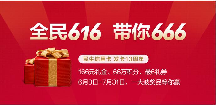 神马?还想加点猛料? 民生信用卡在纪念日当天满足你的期待,给你一个吃“霸王餐”的机会。6月16日,持卡人在指定餐饮行业刷卡单笔消费满166元即可参与“抢-616神秘免单”活动,有机会领取166元还款金,共6666份,先到先得哦!(查看活动详情:扫描下方二维码 / 登录民生信用卡官方微信-我的优惠-全民616) 神马?如此精彩眼看错过?因为你还没有民生信用卡?别担心——通过民生信用卡官网、微信公众号或者“全民生活”APP进行网上填表,最快3秒核发!金鱼的记忆只有7秒,而民生信用卡只用3秒就能记住你,连同你的各种金融服务需求。 回首过去,民生信用卡从13年前的第一次亮相,到如今发卡量超4000万张,凭借卓越的产品与服务,赢得了广大持卡人的信任和青睐。展望未来,面对更加激烈的市场竞争,民生信用卡将在“信任长在”品牌口号的引领下,突显品牌特色,关注价值提升,持续打造业内领先的标杆信用卡。