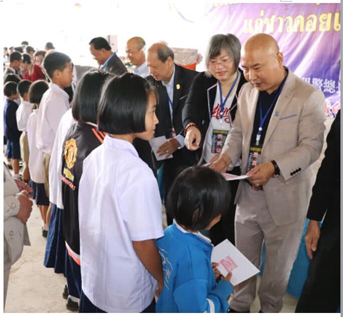 贫困家庭接受物资 张树滨主席及其夫人杨玉玲派发贫困家庭儿童奖学金 该活动还得到前泰国皇家警总长,泰国协里团结党党主席亲自莅临现场支持与鼓励。在活动当天发表了感言,表示对泰北美斯乐温馨慰劳团特别是国内慈善企业家张树滨的感谢。