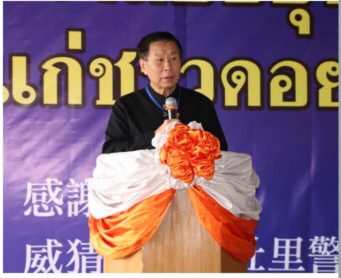 前泰国皇家警总长发表感言 泰国中华侨联陈鸿章会长也发表感言,对慰劳团各位爱心人士的支持表示衷心感谢,同时希望美斯乐村的发展建设越来越好。