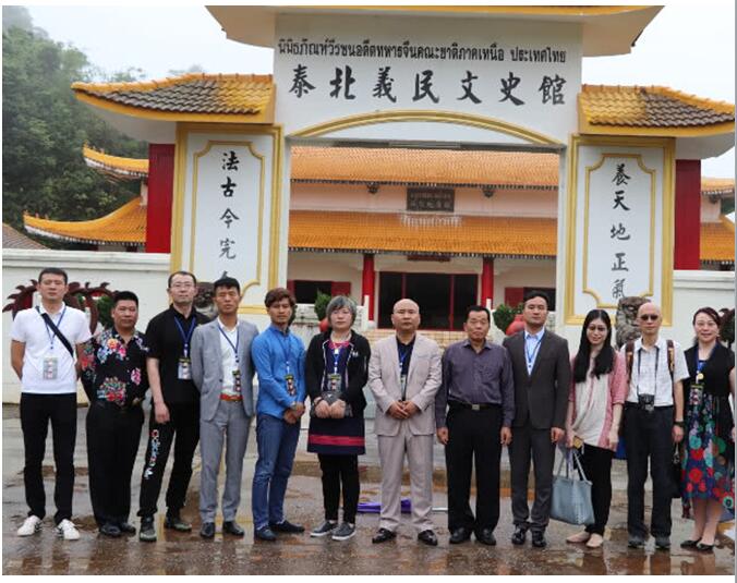 张主席和陈会长接受国内媒体的采访 慰劳团大合照 次日,美斯乐村尚泰明乡长带领慰劳团参观了泰北义民文史馆和段希文将军墓园,展示当年驻地奋战的照片。