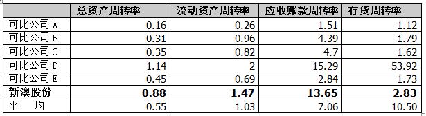 数据来源:WIND资讯 新澳股份在运营能力指标方面的表现也非常优异,公司今年前三季度的总资产周转率、流动资产周转率、应收账款周转率和存货周转率分别为0.88、1.47、13.65和2.83,各项指标在可比公司中排名第二,仅次于可比公司D,主要原因是可比公司D已经转型为商业和服务业公司,商业业务占全部营收的80%以上,相比工业企业,商业企业的资产周转率超高也是正常的。 表3: 新澳股份运营能力指标同行业对比(以2017年3季报为基础)