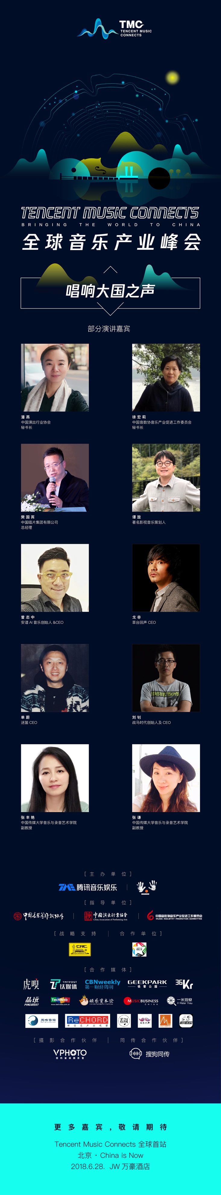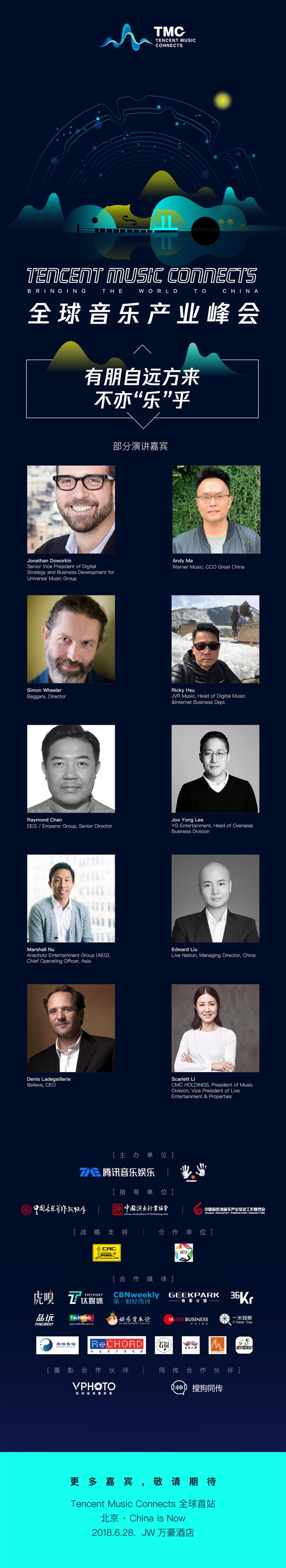 Tencent Music Connects全球音乐产业峰会由中国演出行业协会、中国音乐著作权协会和中国音数协音乐产业促进工作委员会作为指导单位,中国唱片集团有限公司战略支持。届时,来自全球音乐产业领袖也将齐聚一堂,共话音乐的美好未来!