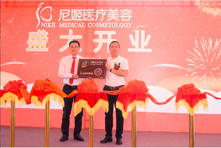 (授牌仪式现场) 剪彩仪式也空前的热闹,预示着尼姬医美的锦绣前程从此展开。
