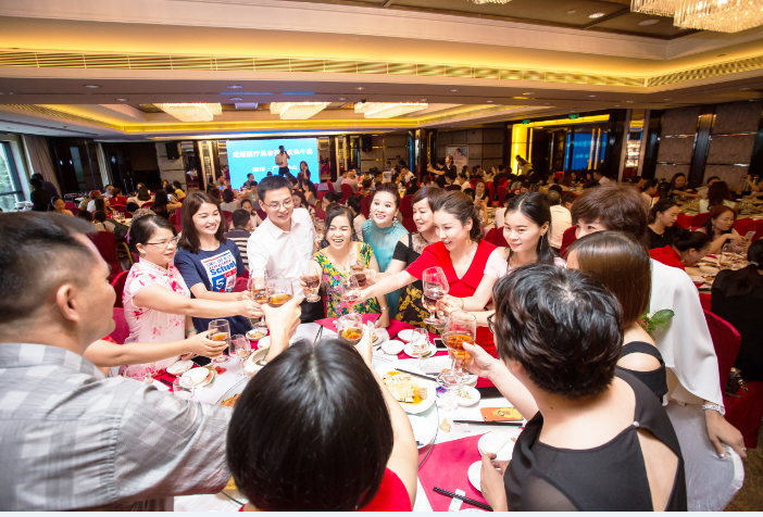 (客人签到现场合影) 中午,全体嘉宾转场喜来登酒店,丰盛午宴,欢声笑语,预祝尼姬医美开业大吉、红红火火!