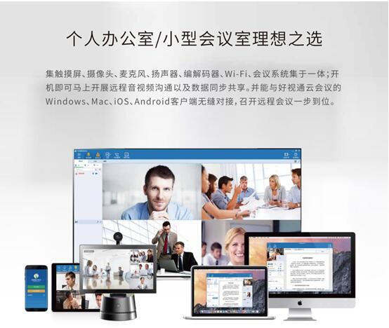 齐心集团副总裁兼好视通总裁侯刚 在现场演示环节,侯刚为现场观众演示了新一代产品“好视通一体化云视频会议终端”。演示过程中,产品清晰的画面、流畅的音效、大屏幕实时切换发言人、声源自动定位跟踪、AI人脸识别、智能语音翻译等功能让现场每一个观众无不感到惊叹,颠覆了他们对视频会议的传统认知。据侯刚介绍,新一代“好视通一体化云视频会议终端”集触摸屏、摄像头、麦克风、扬声器、编解码器、Wi-Fi、会议系统集于一体,采用了11.6寸大屏、强悍的6核CPU、1080P广角摄像头、高保真扬声器以及创新的音视频AI技术,极大地提升了视频会议的体验。同时,该套系统还支持私聊、群聊等多种互动方式,适用于个人、小型团队,以及户外远程、远程医疗、远程家访、高清直播等丰富的应用场景。
