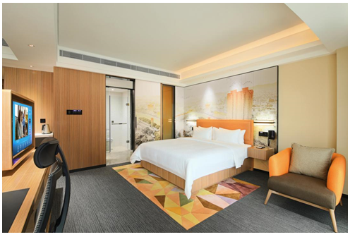 中山南朗希尔顿欢朋酒店 酒店一层的多功能HUB式大堂集欢迎区、聚会区、休闲区、商务区于一体,全方位覆盖百兆光纤极速Wi-Fi,高效连通世界。酒店拥有189套时尚现代客房,为客人提供舒适自在的甜梦体验,每间客房均采用美国“Hampton Bed®”标准的双专利床垫和生态认证床上用品,配备护肤领域殿堂级产品彼得罗夫洗浴套装,确保客人拥有优质舒适的入住体验。可移动办公桌搭配人体工学座椅为商务人士提供更加灵活自在的办公环境,而希尔顿欢朋人气特色产品亲子沙发床更能轻松延伸睡眠空间,孩子也能拥有自己的一片天地。