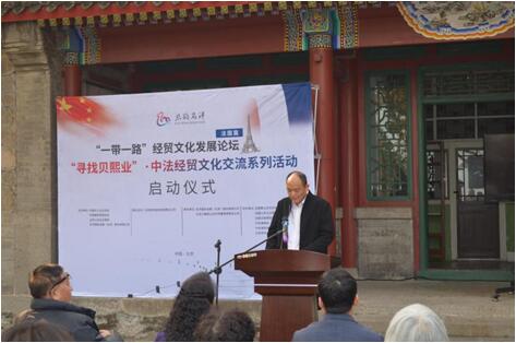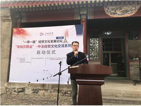 活动组委会项目负责人戚岳宁先生介绍本次活动 借着金秋西山的艳阳,我们从贝家花园出发,漂洋过海踏上法兰西的土地,去开始一段寻找贝熙业的旅途,等到2019年的这个时候,我们将带着满满的收获,回到梦开始的地方——贝家花园,继续深挖历史长河里那些曾为中法文法交流做出贡献的历史名人的光辉事迹,依托海淀西山中法文化交流基地,力争把中法经贸文化交流活动做成每年一届的海淀区对外交流的“名片”工程,同时我们还将积极整合西山区域的中法文化遗址资源,打造集经贸、文化、科技、旅游等元素相融合的特色文化区,期待在不远的将来,把这一活动升级为具有代表性的以年度为单位的“中法经贸文化海淀论坛”。