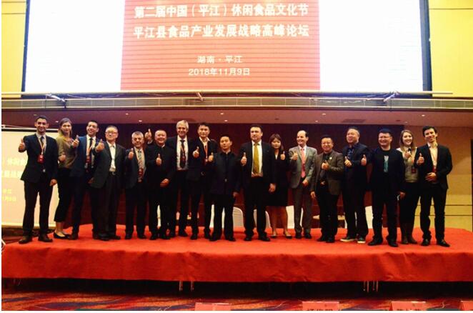 2018年11月9日上午,第二届中国(平江)休闲食品文化节在湖南省平江县天岳广场开幕。当天下午,系列活动之“新零售下食品产业发展国际高峰论坛”在平江阳光国际大酒店隆重召开。论坛旨在对“革命老区、将军县、国家级贫困县”湖南平江,进行特色休闲食品产业联合帮扶,打造休闲食品产业集群化发展,建立食品产业总部基地,科学推动平江地区休闲食品健康、环保、科学产业集群化发展。