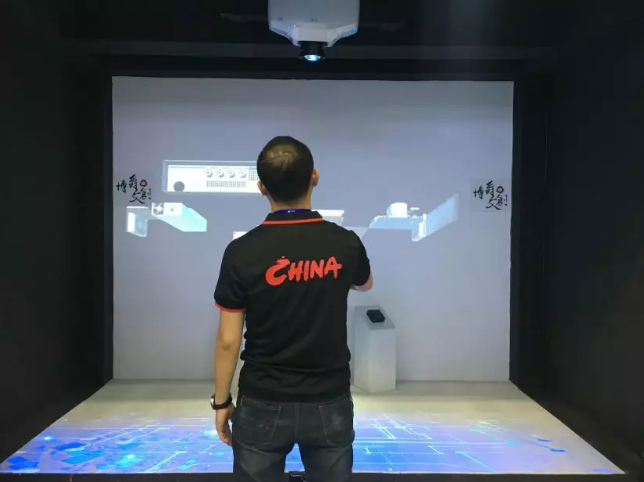算法生成的粒子在两个平行的空间相互交错穿插,浮游的粒子在各自的空间自行游走,用LED屏幕和雷达作为交互介质,当伸手靠近屏幕,粒子会被驱散,让两个不相关的空间,产生关联。 看点05 | 超凡未来的多维交互体验,VR也不孤单