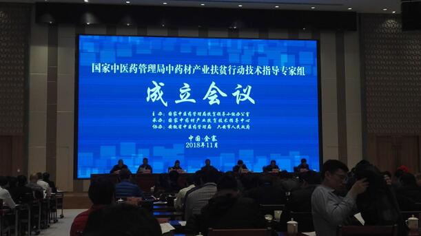 2017年8月,国家中医药管理局联合国务院扶贫办等五部门发布《中药材产业扶贫行动计划(2017-2020年)》。《计划》提到在贫困地区实施中药材产业扶贫行动,通过引导百家药企在贫困地区建基地,发展百种大宗、地道药材种植、生产,带动农业转型升级,建立相对完善的中药材产业精准扶贫新模式。2018年6月,中共中央、国务院发布《关于打赢脱贫攻坚战三年行动的指导意见》。《意见》提出要实施中药材产业扶贫行动计划,鼓励中医药企业到贫困地区建设中药材基地。 响应国家号召,保证中药材产业精准扶贫行动落到实处。2018年11月26日,国家中医药管理局中药材产业扶贫行动专家组成立会议暨六安市扶贫行动技术培训会,在安徽省金寨县干部学院如期召开。会上任命黄璐琦院士、段金廒教授为专家组组长,同时任命崔秀明、郭兰萍等在内的24位专家教授为专家组成员,国家中医药管理局闫树江副局长为专家组成员颁发聘书;与此还成立了由160人组成的14个片区专家团队。专家组的成立是国家为解决基层实际问题,服务中药材产业扶贫而新成立的专业组织。此次会议的召开标示着中药材产业扶贫行动全面开启,致力于精准扶贫服务,响应党中央脱贫攻坚决策部署的有益实践。