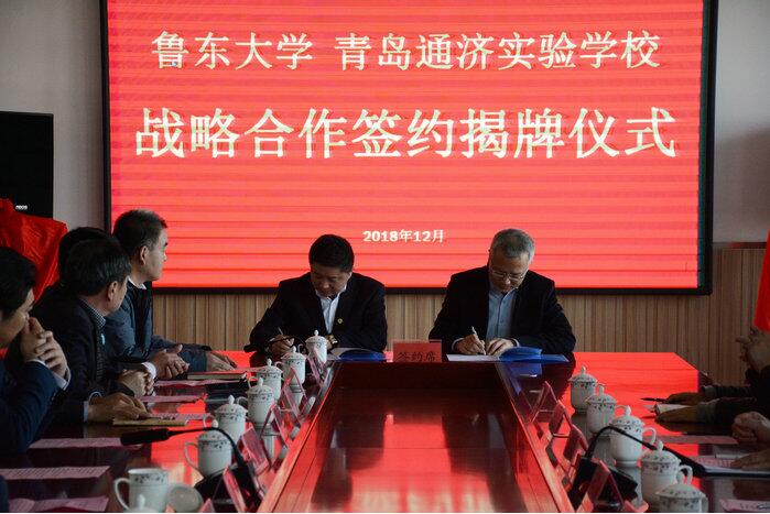 12月27日,青岛通济实验学校与鲁东大学举行战略合作签约揭牌仪式,双方合力创办了鲁东大学实验学校、鲁东大学•青岛通济实验学校基础教育研究院。 鲁东大学校长王庆,鲁东大学副校长钱国旗,鲁东大学教师教育学院党委书记孙盛杰,副院长苏勇、韩延伦,即墨区人大常委会副主任闫丕云,即墨区教体局局长李德军,通济新经济区党委书记刘永军,通济新经济区教育办主任曹善强,青岛通济实验学校董事长仇兆兵等领导出席签约仪式。