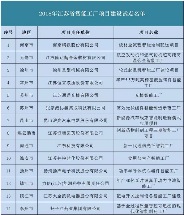 近日,江苏省工信厅发布了《2018年江苏省智能工厂项目建设试点名单》,遴选确定了14个省级智能工厂试点建设项目,其中就包括中小板上市公司通鼎互联(002491.SZ)的“光棒智能工厂项目”。考虑到通鼎互联的“融合大数据与智能算法的智能工厂解决方案”曾入选国家工信部“2017年制造业与互联网融合发展试点示范项目”名单,公司的“光棒智能工厂项目”此次入选江苏省智能工厂项目建设试点名单毫不意外。