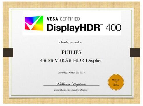 说白了,光线追踪技术在游戏领域的应用,就是为了让游戏画面更贴近真实状态,让画面呈现更细腻的明暗细节,从而让玩家体验到更加细腻更加真实的游戏场景。在这一点上,与HDR高动态范围图像技术是有异曲同工之妙的,都是为了优化画面,给玩家带来更逼真、震撼的游戏体验。 作为游戏的呈现方式,玩家想要切实感受到游戏画面的震撼力,一台优秀的HDR显示器是少不了的。但目前的市场上,并不是所有产品都能称为HDR显示器的。根据VESA公布的DisplayHDR 400标准,只有满足支持全局调光、峰值亮度不低于400nits、全局持续亮度不低于320nits、ITU-R BT.709色域覆盖不低于95%、并支持HDR-10的显示器产品,才能称为HDR显示器。而飞利浦猛腾系列电竞显示器436M6VBRAB,就是一款货真价实的HDR显示器。