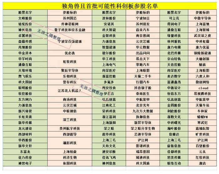 作为资本市场近期的一项重大改革措施,设立科创板并试点注册制成为了今年两会热议的焦点,如无意外,科创板及其概念股也将成为2019年资本市场持续关注的热点。随着各大券商科创板的开户工作启动,科创板越来越成为市场投资者关注的焦点,特别是一些科创板概念股(参股科创板企业的已上市公司)受到了投资者格外关注。 近日,网上流传了一个较全版本的A上市公司参股科创企业名单,这份名单涵盖78家上市公司,揭示了这78家上市公司参股的可能成为首批登陆科创板的优质科创公司或“独角兽”企业。