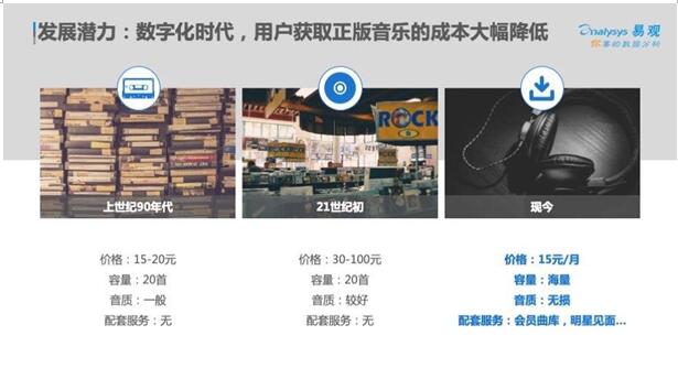 同视频、文学、游戏等领域一样,音乐也是在版权规范化与用户付费意识培养的阵痛中摸索成长起来的。但与其他领域不同的是,随着移动网络的日渐发达,音乐的随身性和多场景优势也更加明显,尤其是经过多场景的应用,音乐的边际成本也得以再次压缩。