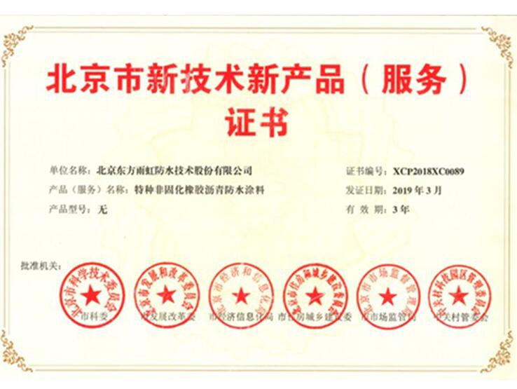 近日,东方雨虹及旗下品牌11款产品获得由北京市科学技术委员会、北京市发展和改革委员会、北京市经济和信息化局、北京市住房和城乡建设委员会、北京市市场监督管理局、中关村科技园区管理委员会等联合颁发的《北京市新技术新产品(服务)证书》。