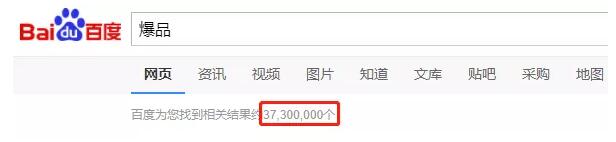 当今中国,一切令人羡慕的生意,都与两字有关——爆品。 爆品已经成为互联网时代下最火的词,无数的大型企业还是小而美企业都在研究着如何做出一款爆品来。 究竟有多火? 百度搜索“爆品”高达3730万个结果。