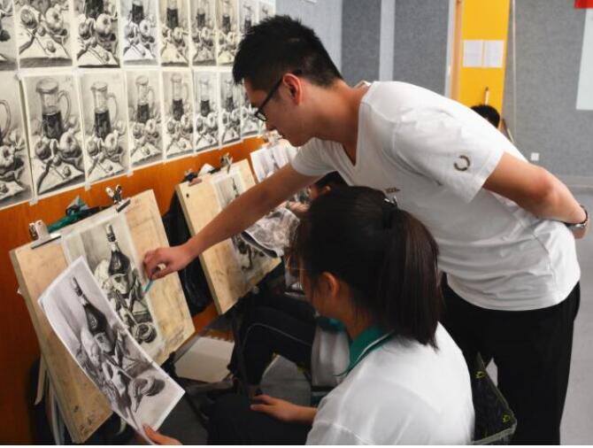 共同集备 师生同画一幅画 针对学校美术专业生中途转化的现状,学校在征询培训机构和借鉴其他学校的基础上,结合当前美术高考特点,围绕课时、教学计划、进度、难度等方面制定了科学详尽的计划,专业老师按照计划有条不紊地开展培训。