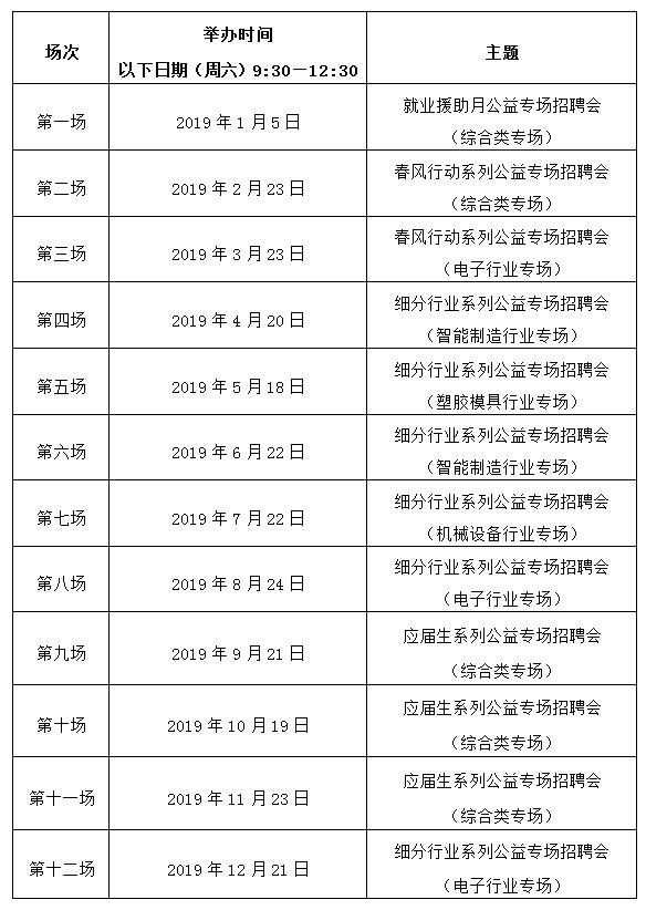 2019年宝安人才园专场公益招聘会排期表 |