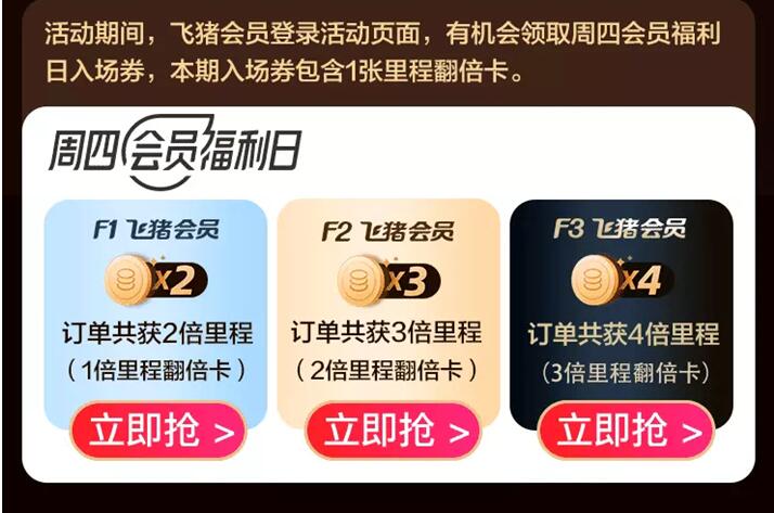 飞猪会员业务相关负责人介绍,以往飞猪会员权益主要以与全球旅行大牌权益互通、积分互换为主,通过会员日的里程加倍,让飞猪各个等级的会员都有更多机会体验到飞猪特权,让旅行变得更普惠更享受。