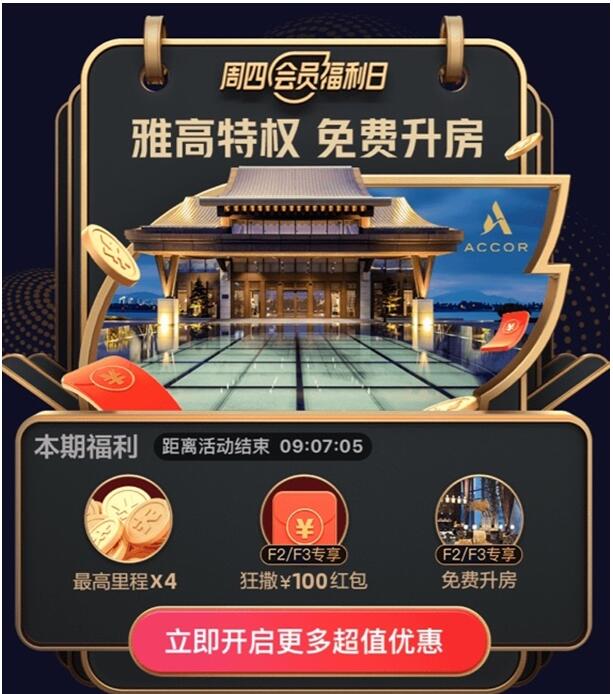此外,飞猪还在会员日推出“每周一大牌”,提供在双11都难得一见的大牌特权。首期大牌为法国雅高酒店集团,为F2和F3会员免费提供“预订即升房”、大额抵用券等超值福利。