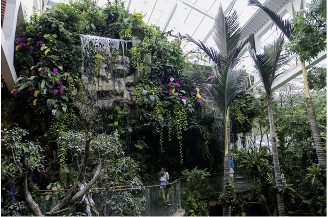 (图)正佳雨林生态植物园景观 正佳雨林生态植物园作为国内首家室内空中雨林生态园,早在开业前就已引发大众热切期待。它的出现开创了旅游产品的新模式,将雨林实景搬进CBD,让消费者不出远门也能拥抱大自然。如今正值暑期,园内游客络绎不绝,欢声笑语回荡在一片葱郁之中。