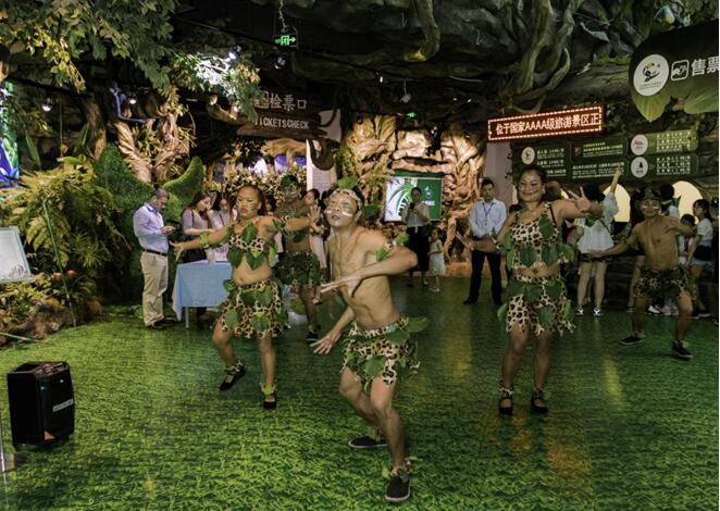 穿行在乔木葱郁、藤蔓垂挂的“天空步道”,360°俯瞰整个雨林园区时,能近距离感受到15米高空瀑布飞流直下的震撼。穿越横跨在丛林中的“空中吊桥”,则体验到另一番“步步惊心”的自然冒险乐趣。漫步玻璃栈道,在炫酷的多媒体互动科技“加持”下,让人感受到魔幻震撼的视觉体验;进入洞天展示区,则让孩子们开启了另一段奇妙的探险之旅,给人以新奇有趣的沉浸式体验……