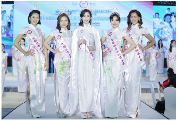 左起:刘秭婕、王兴华先生、陈妍儒、林国明先生 左起:吴佳娟、曾宪群先生、蔡辅雄先生、林雅伦 特别值得一提的是,在万众瞩目的十二大选美皇后走秀环节,指定高级手工定制礼服总顾问吴博仁先生设计的“绝代风华礼服”惊艳亮相,震撼全场,观众为之欢呼鼓掌。2018全球城市小姐世界杯亚军李棠霓、2018台北赛区冠军赖韦如、2017高雄市冠军凃玟君、2015高雄市冠军王慈薇、2012连江县冠军曾靖淳、2015四川赛区冠军高子涵、2004中华港都小姐冠军陈瑀涵等历届冠军佳丽逐一登台亮相,尽显东方女性风华韵味,更有来自东京的2015日本世界美丽皇后冠军Kazue Oshima 大岛惠依、马尼拉的2019妙龄环球旅游小姐冠军Zandra Liwanag珊卓拉 、来自波尔多的2018葡萄牙地球小姐冠军Telma Madeira 泰尔玛、里加的2017拉脱维亚里加小姐冠军Alina Matvejeva 艾琳娜以及来自塔林的2016爱沙尼亚环球小姐前五名ilona Dmitrijeva伊洛娜等国外冠军佳丽助阵。