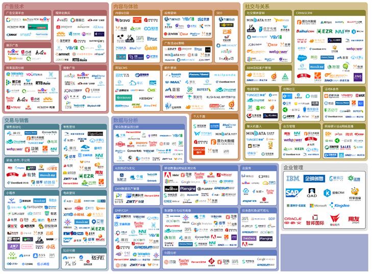 弯弓研究院于7月25日发布了全新的《2019中国营销技术生态图谱2.0版》,该图谱是弯弓研究院经过严谨的分类、筛选和评估的结果,旨在为企业提供一个中国版的行业应用全景图。《2019中国营销技术生态图谱2.0版》从“广告技术”、“内容与体验”、“社交与关系”、“交易与销售”、“数据与分析”、“企业管理”六个大的方面列举了国内有较大影响力的营销技术公司。 仔细查看不难发现,A股上市公司麦达数字(002317.SZ)及其参股公司在图谱中出现的次数频繁,体现了“麦达系”公司在中国的智慧营销行业较高的“江湖地位”。依据该图谱,麦达数字在广告获得与策略、社交媒体营销、千人千面、聊天机器人等细分领域均具有较大影响力;麦达数字参股公司六度人和(EC)和舜飞科技分别在电话营销和程序化购买细分领域优势明显。