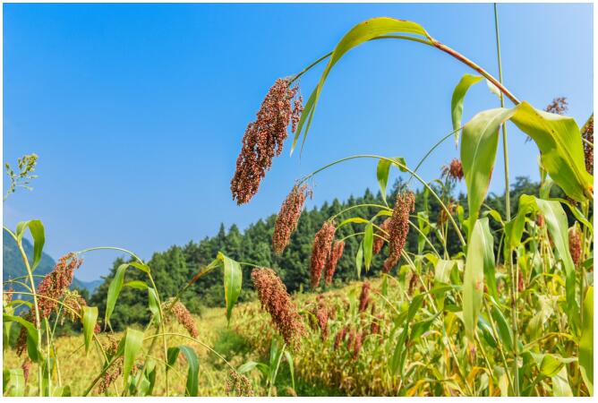 粮为酒之肉,粮鲜则味纯,粮劣则味杂。粮食的选择在酿酒过程中极为重要。时下高粱渐渐成熟,等待收割,高粱如彩霞般映照山村。