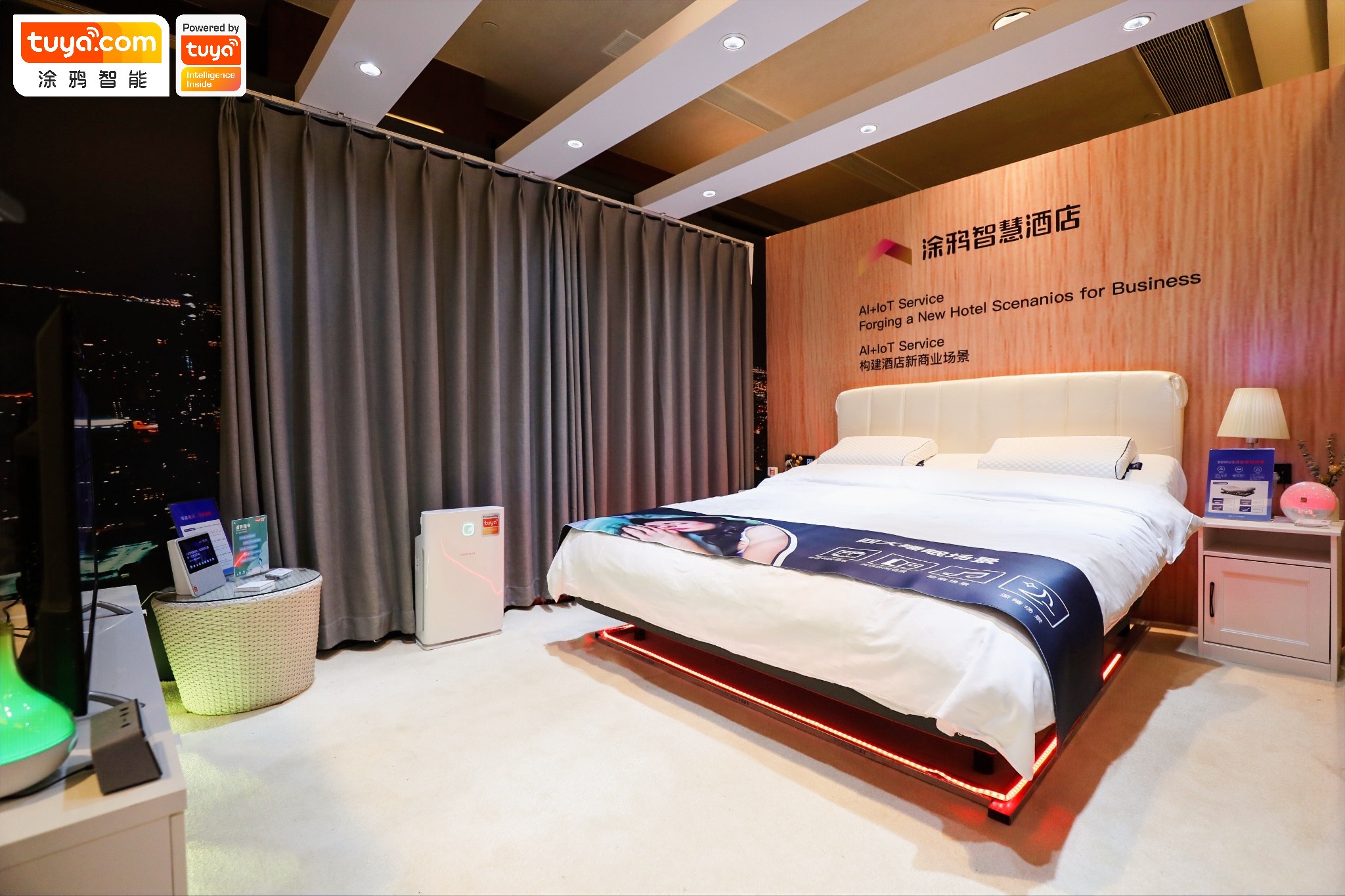 涂鸦智慧酒店场景展示 针对场景落地,FoGo平台更有已配置好的场景池可供选择:通过语音交互功能,在客房场景内融合“智慧睡眠”、“智慧出行”、“智慧旅游”、“智慧新零售”,“智慧服务”、“智慧运营”六大场景。对酒店消费者来说,体验变成:从住到智能体验式入住;对于酒店业主来说,把单一维度的客房收入变成了客房+新消费模式的立体生活空间。 应海平强调,涂鸦智能并不会通过FoGo平台直接落地智慧酒店项目,与下游品牌商及集成商形成竞争关系。“我们希望把涂鸦的核心技术、专业知识和创新商业模式,分享给更多行业内有能力、有决心的渠道伙伴,通过技术和产品层面的赋能,共同给酒店行业带来新气象。”