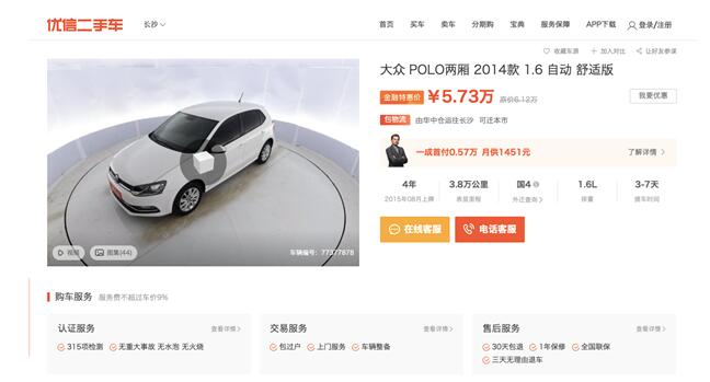 你还别说,优信二手车平台上不但各个价位的车辆很多,还能在线VR看车,这比其他平台只能图片看车,要方便仔细的多了。当我了解一辆车的时候,还能通过视频看到车辆内饰、车头、车尾、车身、发动机、车漆等等各个部位的实景视频,车辆的检查报告也全部齐全,打消了我对于在线看车是否仔细到位的疑虑。 而下单之后,这全国购车的物流就更厉害了。我最终决定的是买大众的白色POLO,省油、低价、性能好、性价比高,作为我的第一辆车,刚刚好。在优信二手车上,我看的这辆车是在华中仓,下单之后3天就到长沙了,我的天啊,某宝的速度也不过如此吧。优信二手车的工作人员告诉我,在他们这买车,只要不是偏远地区,物流基本3—7天就会把车辆送到用户手上,这就是所谓的“买全国”了。据说是用了一套什么成本模型和时效模型的算法,然后用物流多点联运和多式联运的方式运输。嗯,总之就是很牛X的意思。