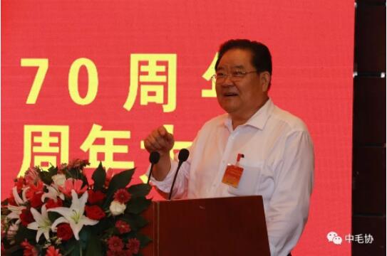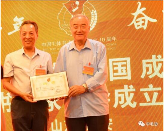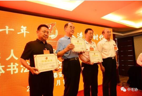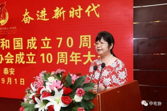 在泰安万朝国际酒店隆重召开 大会会场 (中毛协网讯)2019年9月1日上午,庆祝中华人民共和国成立70周年暨中国毛体书法家协会成立10周年大会在泰安万朝国际酒店隆重召开。 出席本次会议的有:中国人民解放军空军原副司令员、中毛协原会长景学勤;中毛协会长、毛泽东生活秘书吴连登;中毛协名誉会长、毛泽东侄女毛小青;中毛协名誉会长、廊坊市人大常委会原副主任杨国林;泰安市政协原主席支建立;中毛协荣誉会长尚彪、封波;中毛协顾问、著名书法大师贾松阳;中毛协顾问、中国华艺出版社社长石永奇;中毛协顾问李汝川;中毛协顾问、中国武警军乐团原政委张业军;中毛协顾问、北京武警总队医院原副院长李明;中毛协顾问、山东革命老区建设促进会副会长兼秘书长王波;中毛协顾问、西宁市公安局原局长朱向国;中毛协顾问、中韩书画家联谊会副秘书长李敏善;中毛协顾问、人民教育出版社高级编辑吕敏敏;中毛协顾问、山东省青年书法家协会副主席邹方臣;中毛协顾问、中国乡土艺术协会文化产业部副主任赵誉人;中毛协顾问、丰台律协指导委员会副主任侯安春;柬埔寨王国诺罗敦·帕花黛薇公主特别助理、高棉日报社副社长戴志刚;中国国际贸易学会原秘书长、北京九州枫林艺术研究院院长崔殿甲;北京大学教学基地医院中医专家陈企望;连云港市商务局原副局长王绪浦;济南御腾餐饮有限公司董事长郭绍栋;山东景芝酒业副总监孙华先;特邀嘉宾徐玉凤、韩丽霞、李凤霞、李辉、段中崚、徐涛;中毛协副会长孔维阳、姚二峰、张隽平、王炳坤、李润东、崔金言、赵恩海、张峰、谷广联、王道庚、兰涛、谷建林、杨广生、丛江、王从江、陈玉柱、戴德民、武法村、郭亮、马成龙、张振士、李克先、郑汉臣、韩晓波、孙立;中毛协荣誉副会长代表刘金平、苗洪祥、高维阳、张晓宇、范松杰、王吉磊、李光明、邵红升、张岁让、李勇、李霞、刘茜;中毛协红色书画创作基地的代表辛克前、马光海、腾海成、车夫、展承胜、张业斌、于维利、李升刚;常务理事代表马仁安、张强、何邓、方保仓;理事代表王学川、张维领、甄东来、曾海彬、陈忠武;会员代表孙栓奎及各界代表200余人。 本次大会的主题是:壮丽七十年、奋进新时代,以习近平新时代中国特色社会主义思想为指导,坚持不忘初心、牢记使命、继续前行,积极践行弘扬传承毛体书法文化、传统文化、红色文化和用毛体书法艺术更好服务中国特色社会主义建设。 大会的主要任务是:向大会报告协会成立10年以来的工作、表彰先进、交流经验、推进组织建设。为把中国毛体书法家协会事业推向新时代新阶段作出新贡献。 通过这次会议进一步重温初心,铭记使命,凝聚合力,为协会迈向新时代的新阶段奠定坚实基础。 会议由中国毛体书法家协会副会长兼秘书长孔维阳主持,会议在嘹亮的国歌声中拉开帷幕。首先观看纪录片《风景这边独好》;中毛协副会长、泰安钢材集团董事长王炳坤致开幕辞;孔维阳副会长向大会作《工作报告》并宣读了新聘任协会顾问、荣誉副会长名单,新提名副会长决定,先进集体、先进个人名单、优秀党员名单,中国红色文化传播大使名单,中国毛体书法名家名单;吴连登会长向“先进集体”颁发奖牌并讲话;毛小青名誉会长向“先进个人”颁发证书并代表毛家亲属讲话;杨国林名誉会长为段中崚颁发“荣誉副会”长聘书并讲话贾松阳大师向大会赠送书法作品并讲话;景学勤将军向“中国毛体书法名家”颁发证书,向“中国红色文化传播大使”授牌,向大会赠送书法作品并讲话;李汝川顾问为崔殿甲颁发顾问聘书;张业军顾问为陈企望颁发顾问聘书;李文化书记向党支部“优秀党员”颁发证书。 根据《中国毛体书法家协会章程》之规定,为适应新形势下中国毛体书法家协会发展需要,经协会会长会议决议,决定提名王绪浦、杜瑞义两位同志为中国毛体书法家协会副会长。 中毛协会柬埔寨文化交流中心主任戴志刚宣读埔寨王国帕花黛薇大公主殿下贺信;石永奇顾问宣读中毛协会北美文化交流中心贺信;李明顾问宣读中毛协会澳门红色书画创作基地贺信;王波顾问宣读加拿大山东商会贺信;陈玉柱副会长代表企业宣读贺信; 景学勤将军在讲话中概况总结了协会10年来工作的特点并对下一届协会工作提出了指导性意见;毛小青名誉会长代表毛家亲属向大会表示祝贺; 中国毛体书法家协会会长吴连登在讲话中指出:“中国毛体书法家协会在国内外的战略布局基本已经完成,所做出的成就已在《风景这边独好》纪录片中明确展现。10年来,我们一直用‘初心’温暖‘使命’前进,为毛体书法文化的长足发展奠定了坚实的基础。今天在泰山脚下庆祝10周年大会的召开是一个具有深远意义的大会!标志着毛体书法文化事业走上了一个新的征程。 为此,我希望社会各界能够一如既往地给予我们帮助和支持。我也希望我们的全体会员,要在新时代中国特色社会主义思想指导下,不断提高书法艺术水平和理论水平,谦虚谨慎、淡泊名利,增强自我净化、自我完善、自我革新、自我提高能力,写出让人民群众喜欢的高水平的毛体书法作品。 我们的协会经过10年的发展,已经进入了新时代的新征程,任重而道远。我坚信:我们的前途是光明的!我们的征程将是一个长期的、持续的过程,也必将是一个不断收