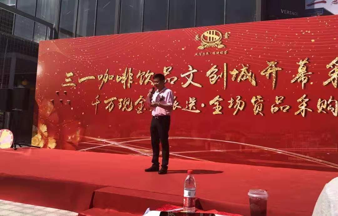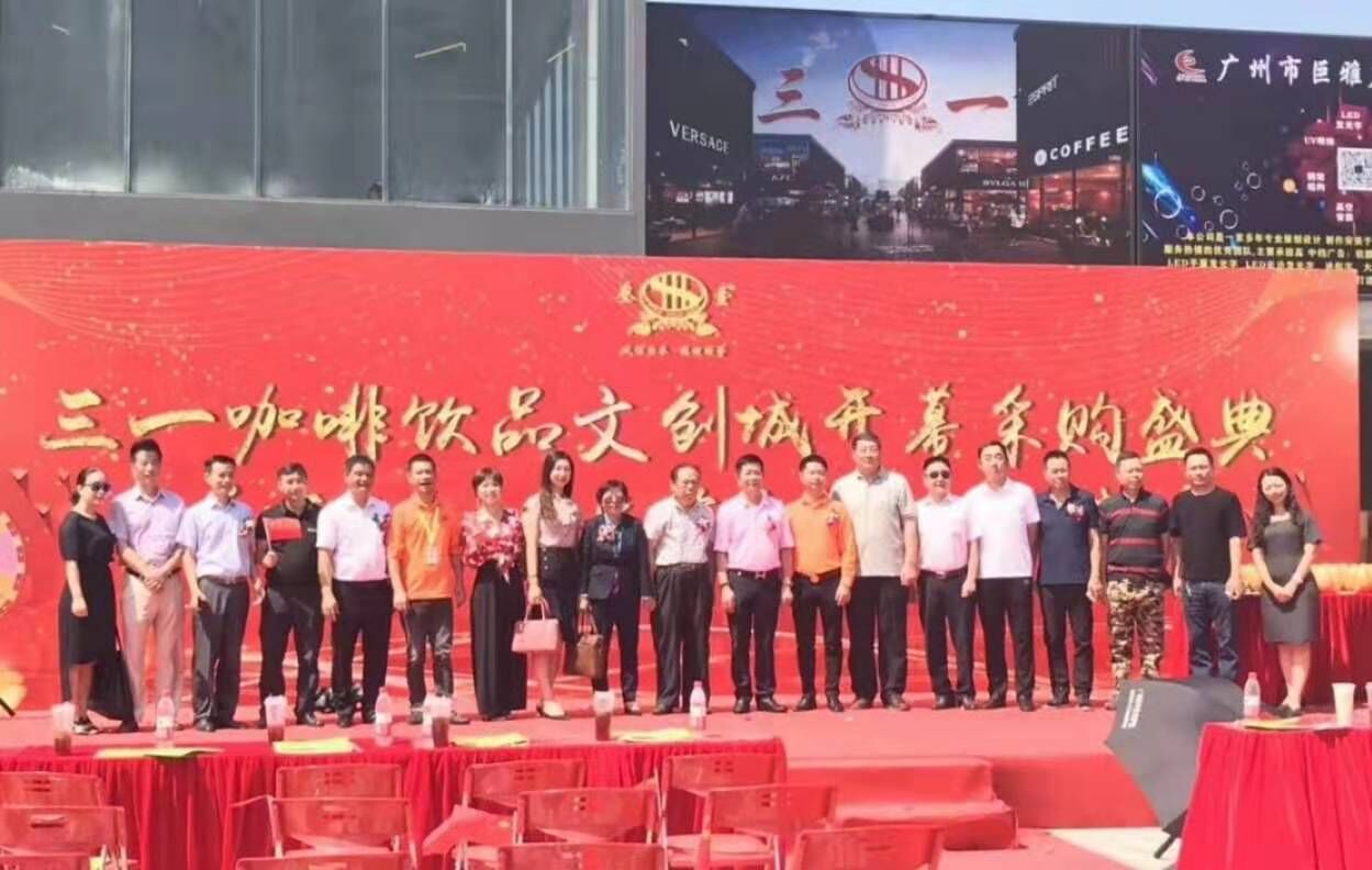 原三一国际食品城早已驰誉海内外,升级换代后的新文创城更将为成为国际产业地标性园区,将发展成为年轻人就业创业基地,咖啡饮品产业的领头羊、标杆企业,朝阳行业的引领者。 ·“三一”2.0:升级换代促创新 当天的三一咖啡饮品文创城开幕暨采购节活动,吸引了众多投资商、经销商、采购商及消费者参加,其中不乏老外的身影。晚上的答谢晚宴,人气曝棚,更是达到98围台规模,在文创城内一字排开,其气势与广东有名的“龙舟饭”不相上下。