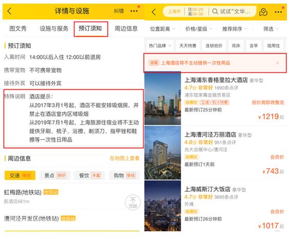 面对新规后即将到来的首个长假住宿高峰,飞猪提醒有计划赴上海、广州的游客,随身携带洗漱包等用品,过一个环保绿色的国庆假期。