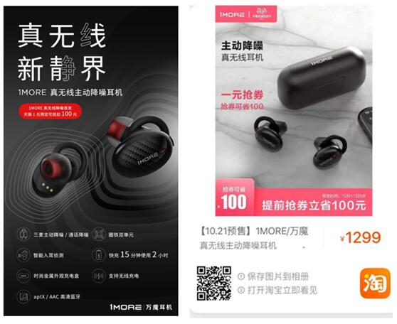 不妨看看1MORE年度旗舰新品:1MORE首款圈铁主动降噪真无线耳机。即日起至10月20日,1MORE天猫旗舰店开启1元预购活动,预约可抵扣100元现金。 随着公司“1MORE”品牌产品的持续热销,预计自有品牌业务很快将成为推动万魔声学业绩增长的主要动力,而万魔声学也有望逐步发展成为世界级的中国声学品牌。 |
