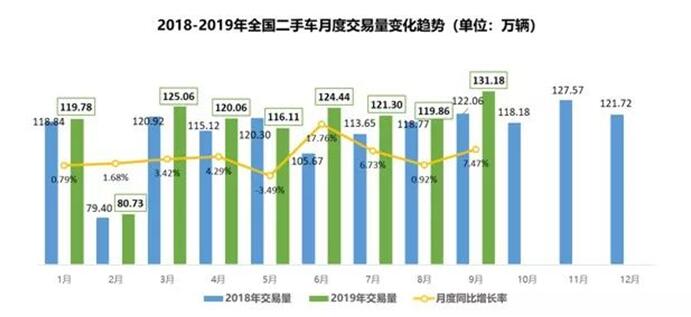 近年来,我国社会人口结构不断发生新的变化,互联网消费升级大潮的兴起,带动消费需求呈现“刚柔并济”的增长趋势。在消费升级的背景下,我国二手车交易亦高速增长。根据中国汽车流通协会统计,2019年9月,全国二手车交易量达到131.2万辆,同比增长7.4%。2019年1-9月,累计交易二手车1058.5万辆,同比增长4.3%,二手车交易量增速比新车销量高出14.6个百分点,二手车交易量与新车销量的比例从2018年的0.49:1提升至0.58:1。其中二手车异地转籍总数达307.1万辆,异地转籍比例为29%,同比上升3.6个百分点。二手车市场持续活跃,在一定程度上对冲了新车消费下滑压力,成为拉动汽车消费的新动力。