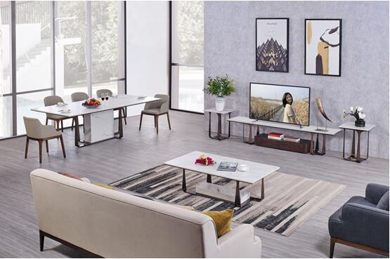 那么,将这块“大岩板”献给市场,会发生哪些化学反应? ---给新时代客厅“换装” 客厅是整个家的核心区域,把一家人团聚在一起,孩子在边上玩耍,老人在旁谈笑风生,每天饭后的闲聊时光,似乎全都交付给了客厅。客厅对于家的意义,是让粗茶淡饭的日子变得活色生香,无限延伸家的美与好。
