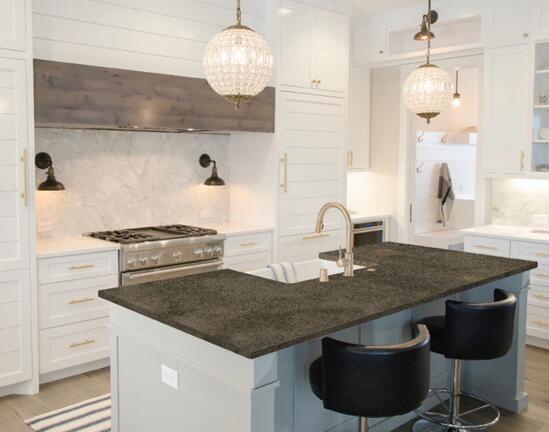 另外它的莫氏硬度超过5级,无惧刮花磨损。用它做成的厨房台面,在上面直接切菜、切水果都不成问题。而且防渗水的能力也很强,看上去湿乎乎的肉也可以直接放在桌子上处理!有评价说,“这简直就是为厨房量身定制的材料”,每处细节都彰显了它对于绿色健康的环保理念的坚守。 ---给新时代生活更“多面”的选择 你可能没有想到,蒙娜丽莎超石代岩板已经可以运用于家居生活的方方面面了。房间里的衣柜、书房里的电脑桌、浴室里的收纳柜和洗手台、床头旁的小边柜,阳台放的小茶几.......